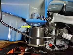 Remove bolt securing frunk to washer fluid reservoir neck