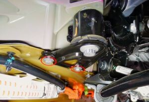 Remove bolts securing stabilizer bar to subframe