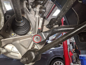 Note1x nyloc nut, 15mm, 55 Nm, Break nut loose then counter-hold ball joint with 5mm hex, Discard after removal