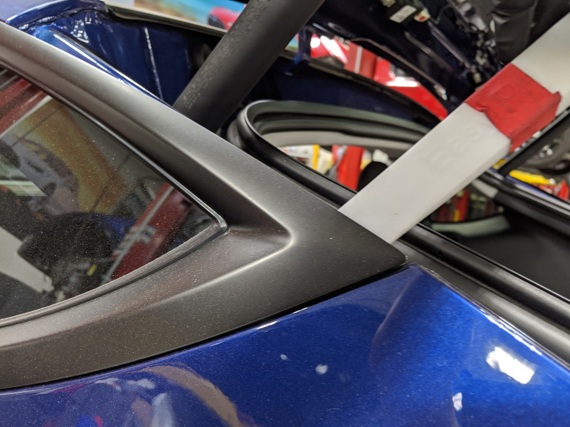 Cut down the rubber seal around the LH rear quarter glass to allow more