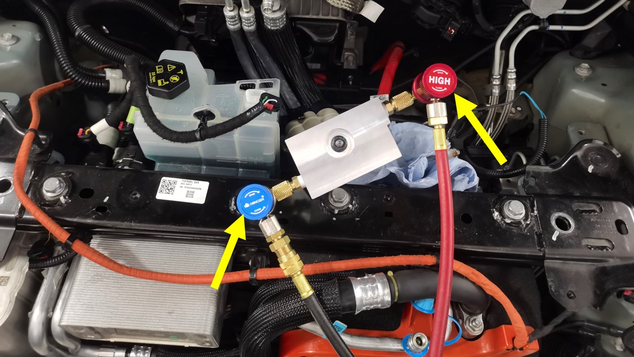 - Une fois la récupération de climatisation terminée, débranchez les tuyaux de climatisation du véhicule.