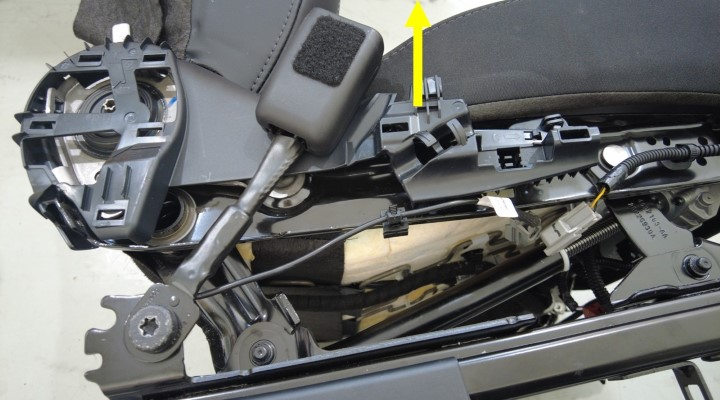 Retirez le boulon qui fixe le moteur d'inclinaison au cadre du dossier du siège.