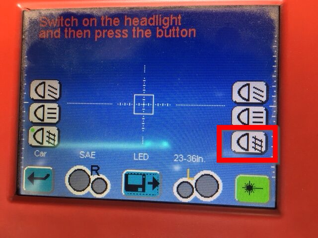 Select Headlight (LHD or RHD option) on the headlight aimer: