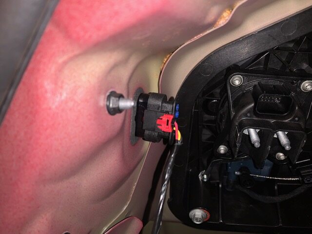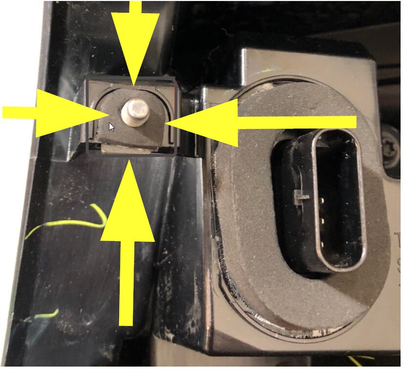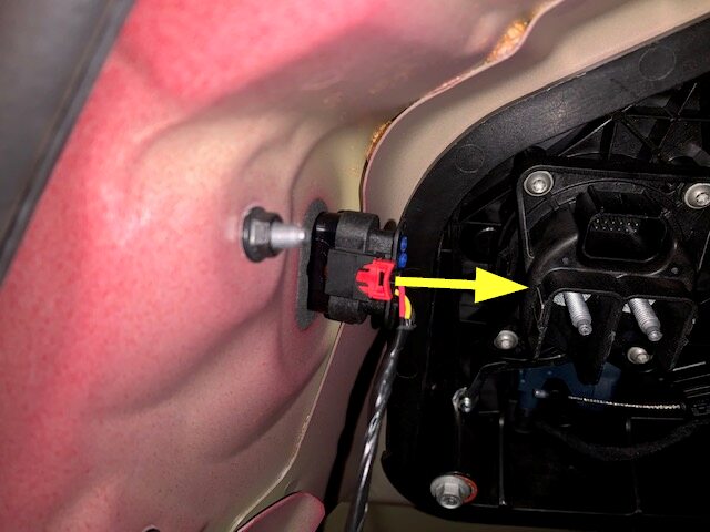 참고1x connector, Slide red locking tab away from connector, Then depress black locking tab to release the connector. Recommend assistance, Place rear fascia on padded surface to avoid damage. Not need to disconnect rear fascia connector for AP4.
