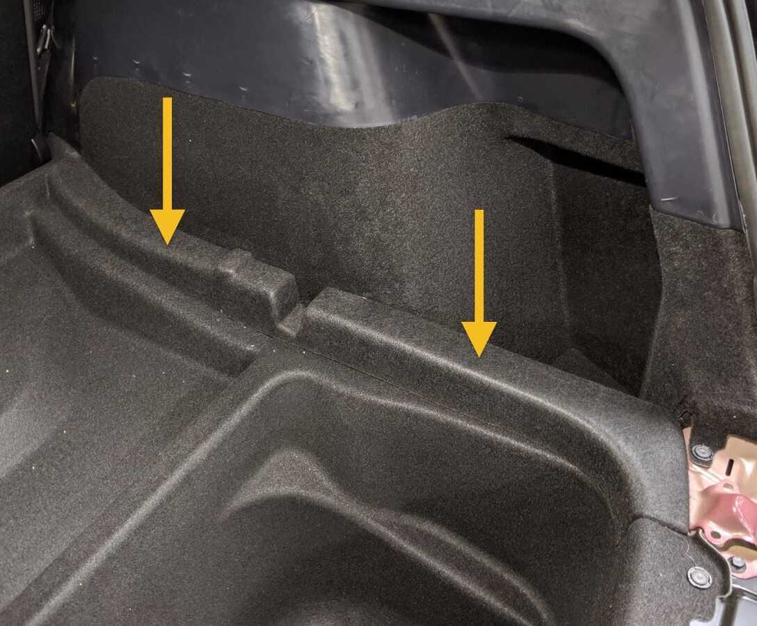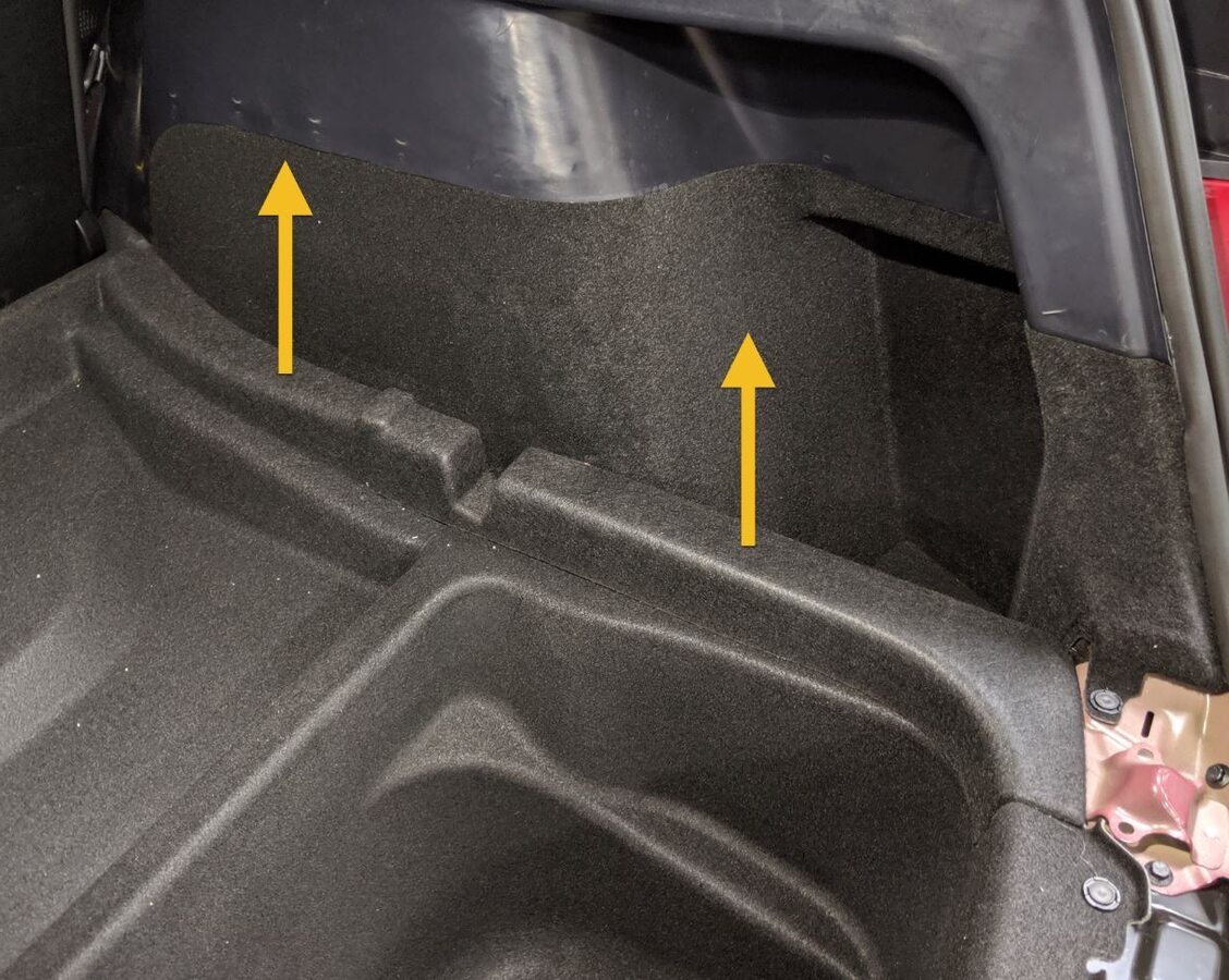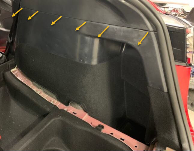 참고6x clips, Guide front upper corner groove under headliner, Insert guide tab to headliner behind quarter glass, Seat trunk seal to edge of trim, trim part may slightly differ by vehicle build location, and the number of clips may also vary