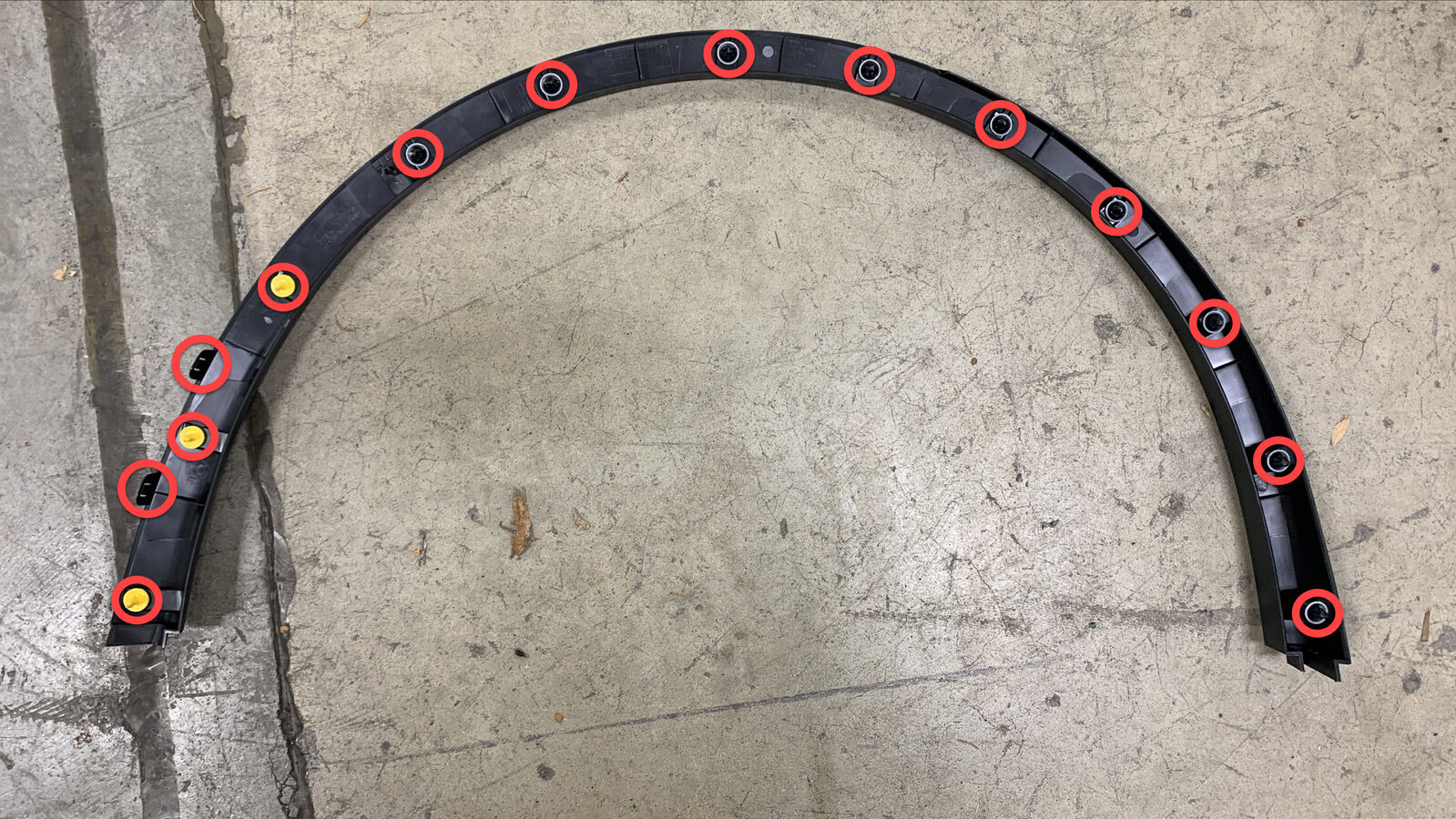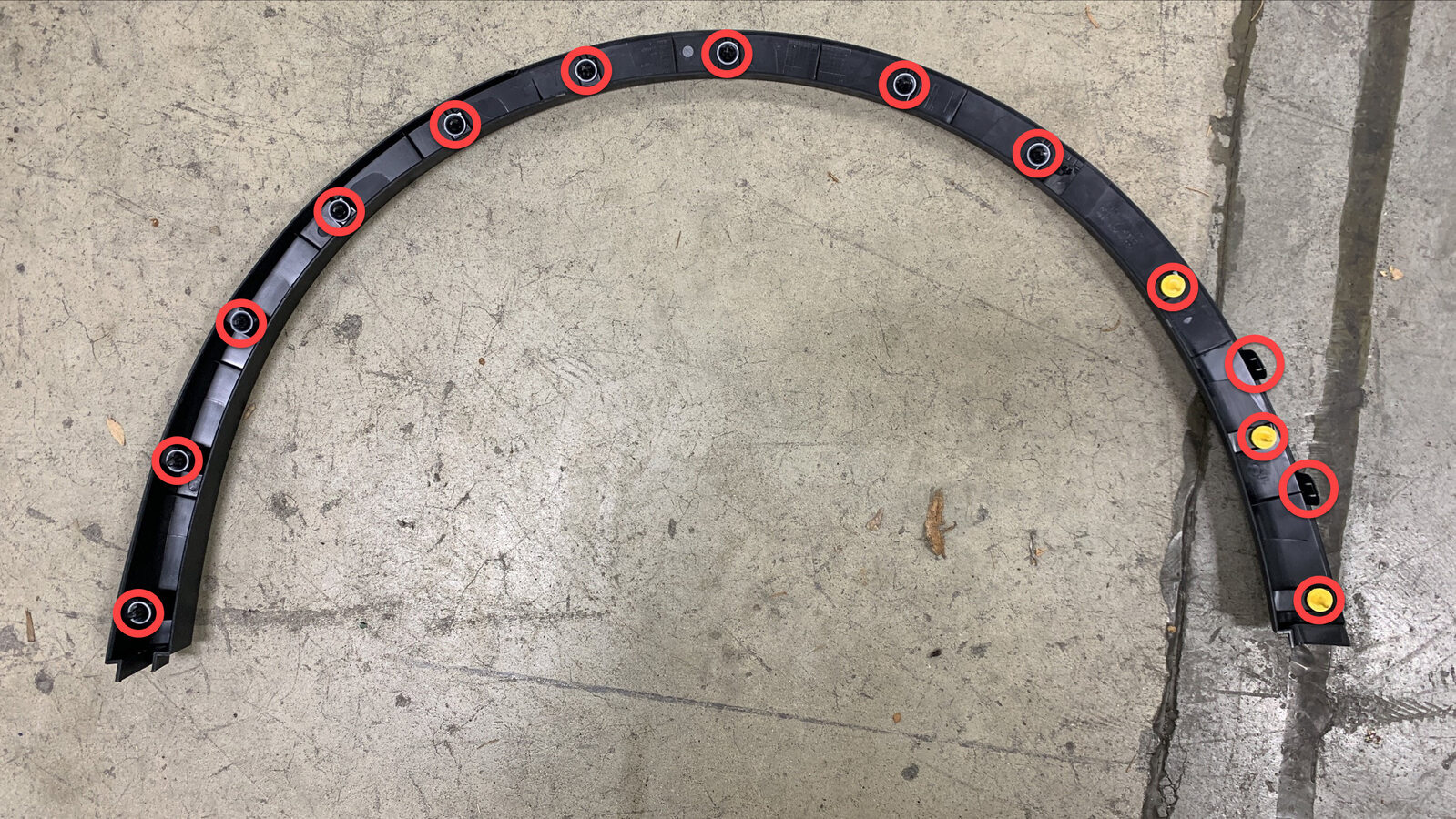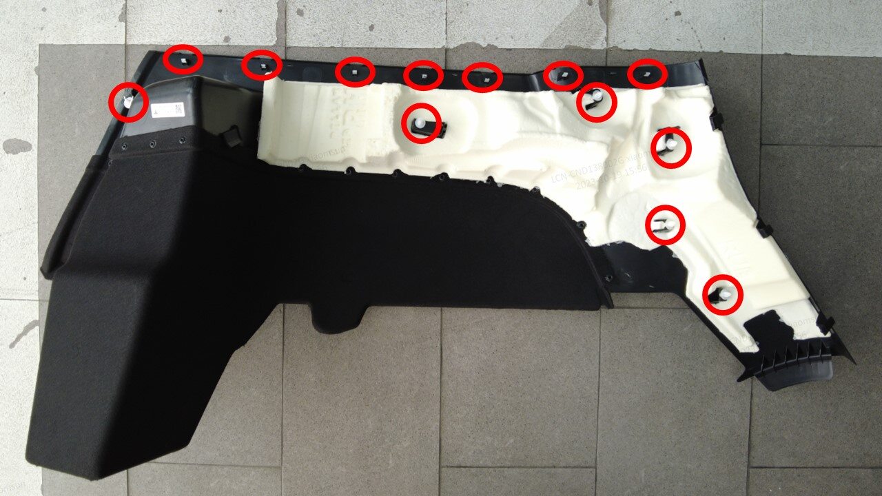 참고1x push clip, 13x clips, trim part may slightly differ by vehicle build location, and the number of clips may also vary