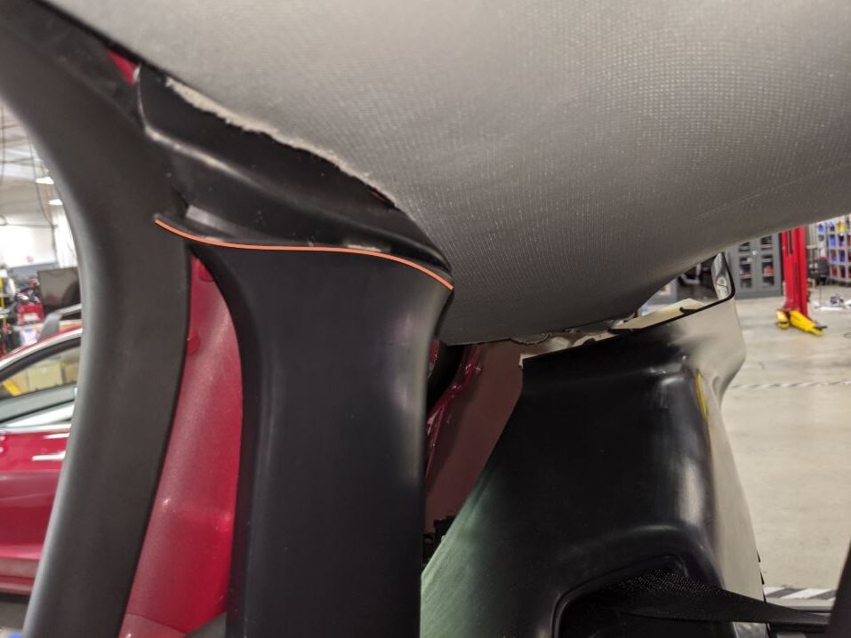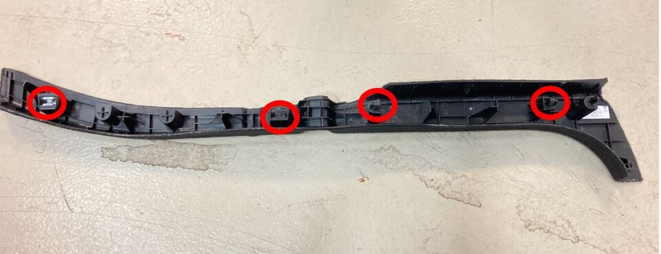 참고2x connectors, 1x push clip, 8x clips, 7x tabs, guide front clip stanchions around LH C-pillar, trim part may slightly differ, by vehicle build location