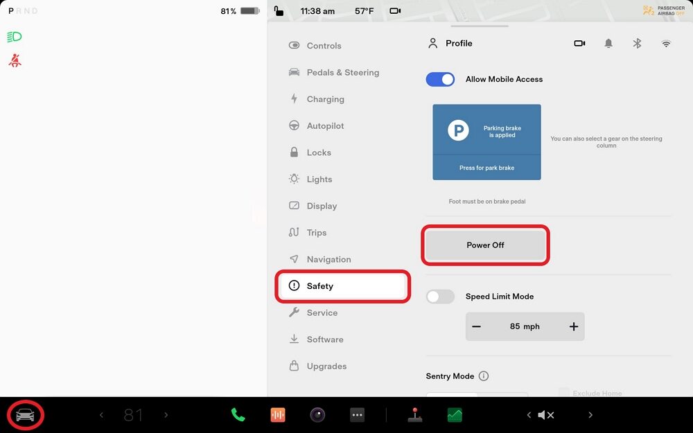 참고Via Controls > Safety > Power Off, Select Power Off button at warning dialogue box