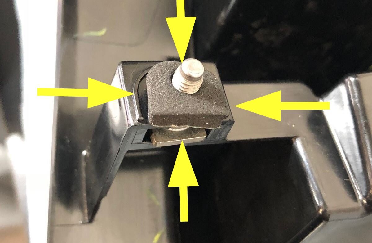 참고2x tabs, 2x clips, Clip position should not be adjusted after bracket is removed or will result in bracket not seating properly later