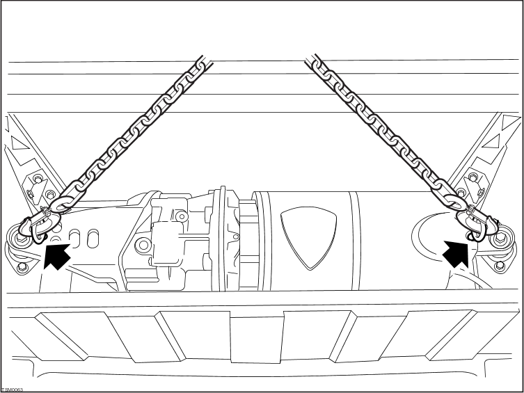 - Install lifting eyes (x2) to power train.