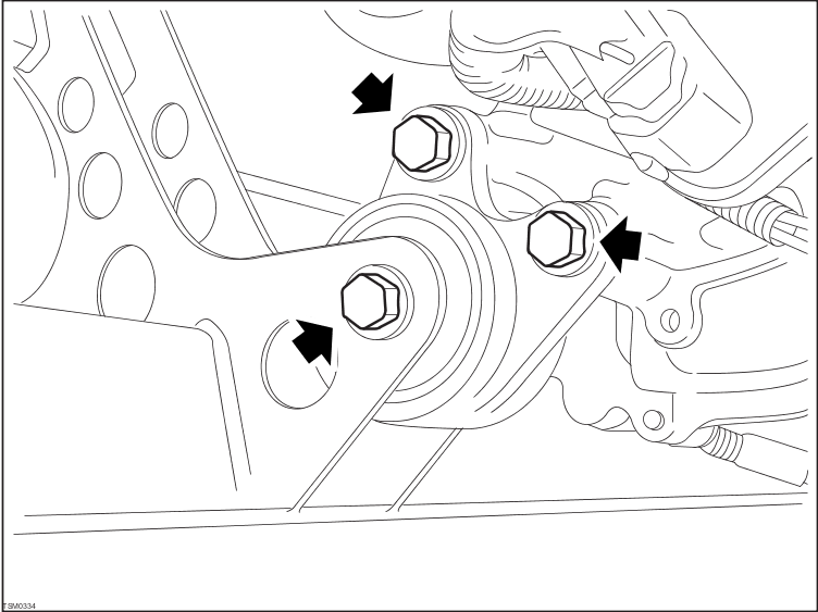 - Remove bolts (x2) securing mounting to transmission (torque - 35 Nm).