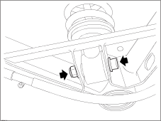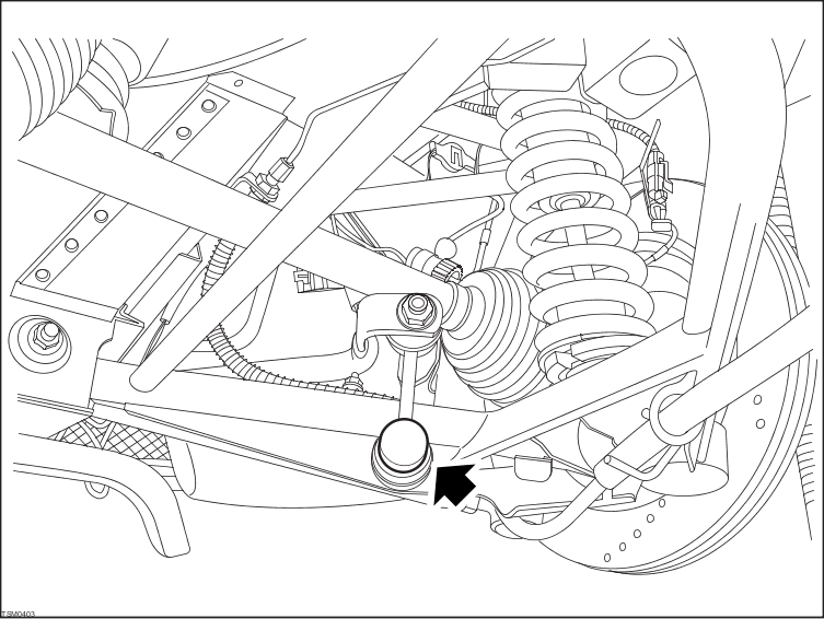 | CAUTION: Only tighten wishbone pivot bolts when the suspension is in ride height position. This can be achieved by either using the ride height tools or when the vehicle is on its wheels. |