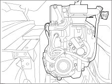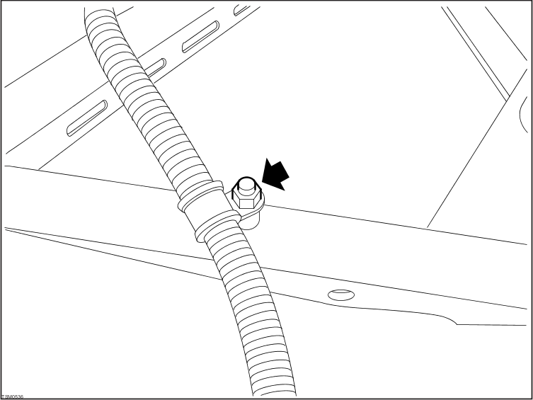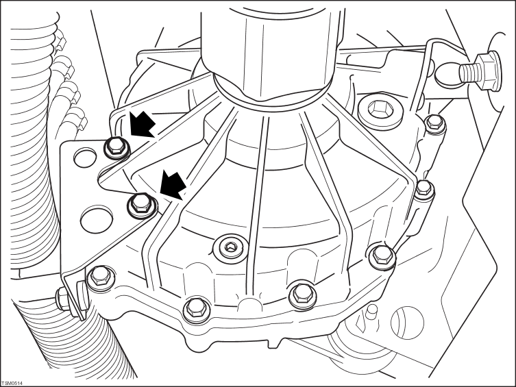 Disconnect harness connector from transmission control module and feed harness through opening in subframe (torque - 2 Nm).