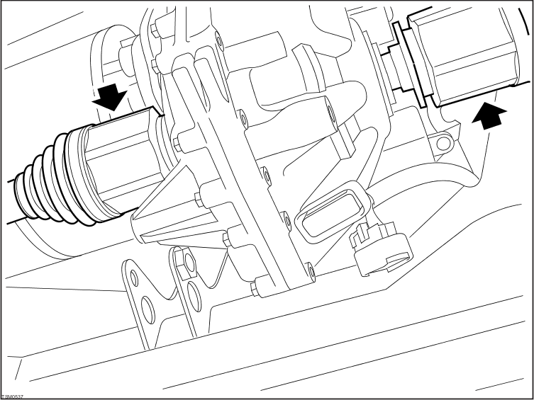 - Disconnect LH driveshaft from transmission and position aside.