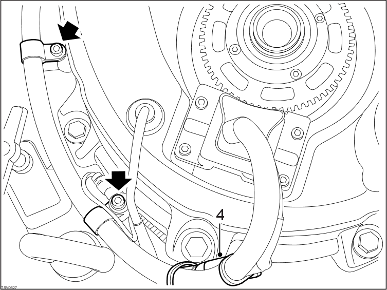 - Remove screw (x2) securing encoder harness P-clips and ground lead to motor housing.