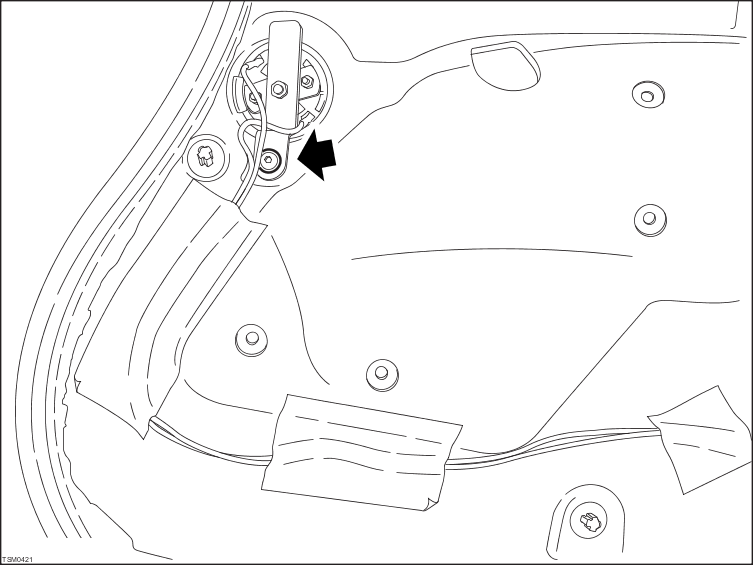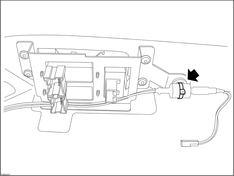 - Release cable tie securing speaker harness to switch pack retaining plate.