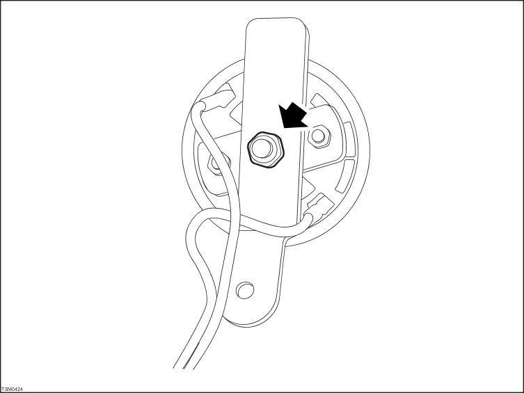 - Remove nut securing mounting bracket to speaker and remove bracket.