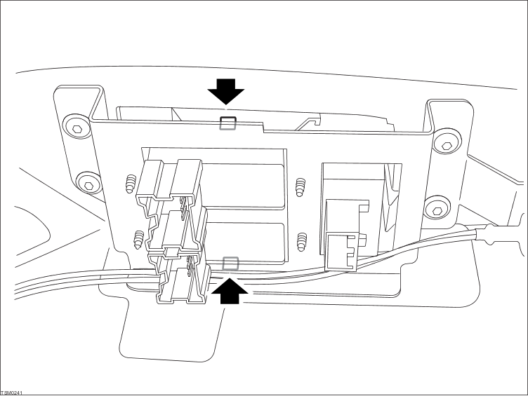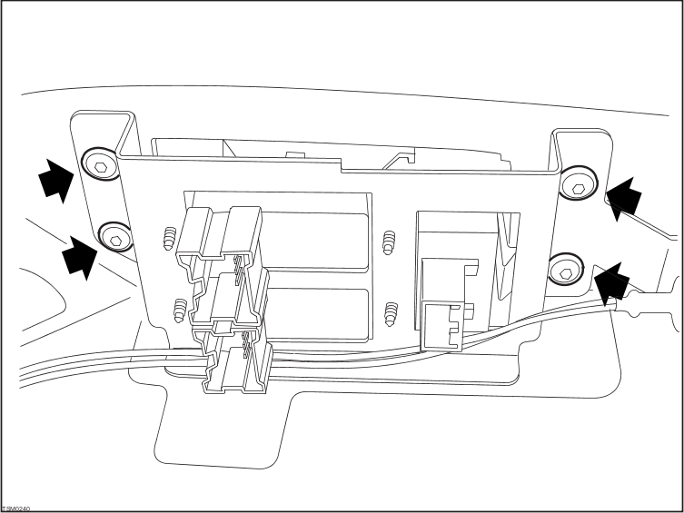 - Remove screws (x4) securing switch pack retaining plate to door trim panel.