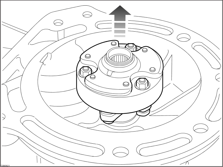 | CAUTION: The drive coupler is secured to the transmission input shaft by a snap ring. If it can not be removed by hand, a suitable puller should be used. |