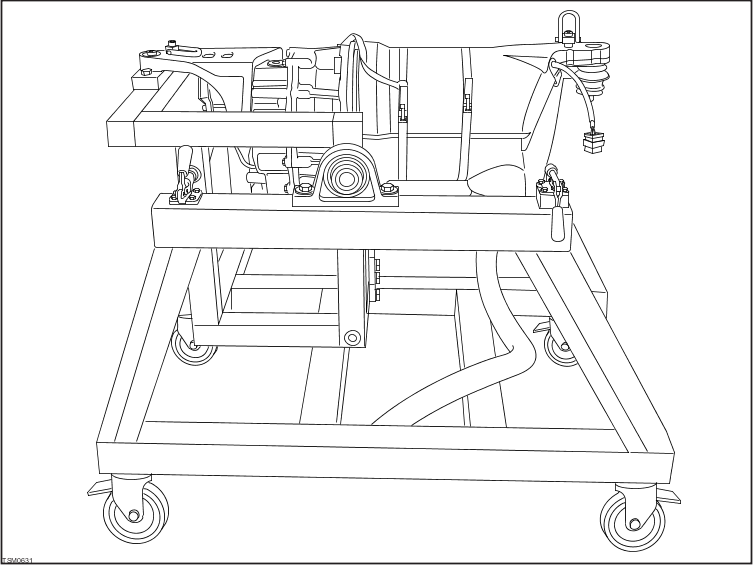- Lower power train onto support cradle 1001024 and secure with mounting bolts.