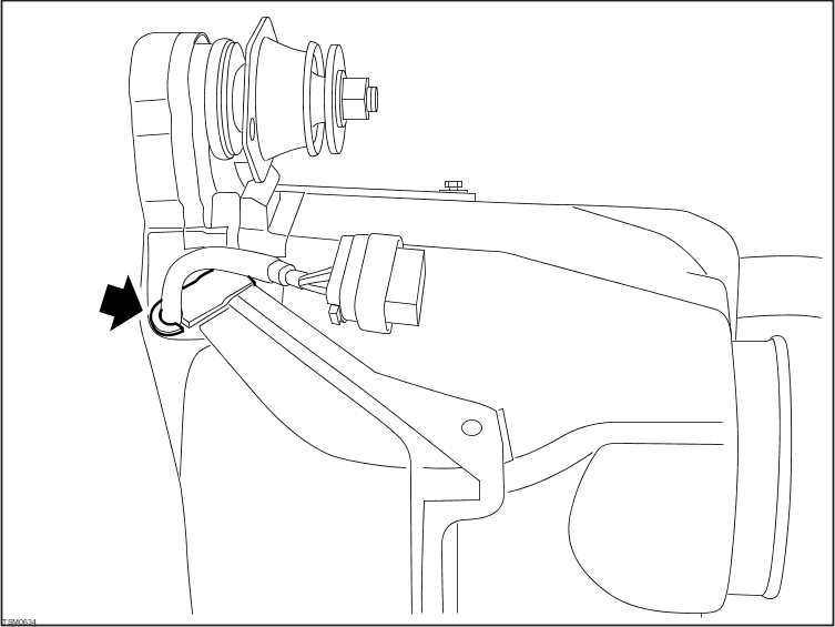 - Remove bolts and washers (x2) securing rear edge of upper shroud to lower shroud (torque - 5 Nm).