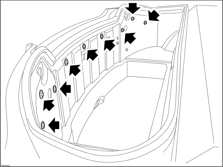 - Remove bolts (x9) securing bumper to trunk assembly.