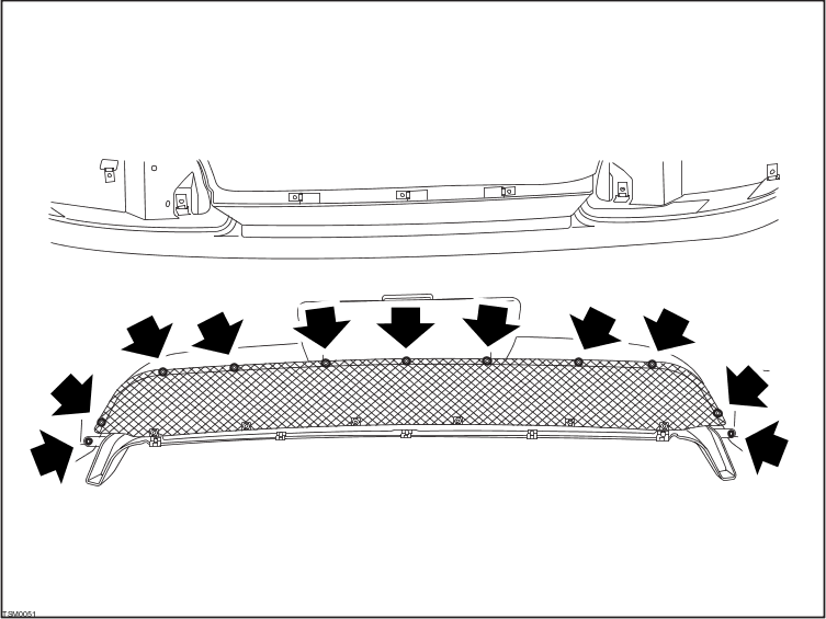 - Remove screws and washers (x11) grille and diffuser to bumper.