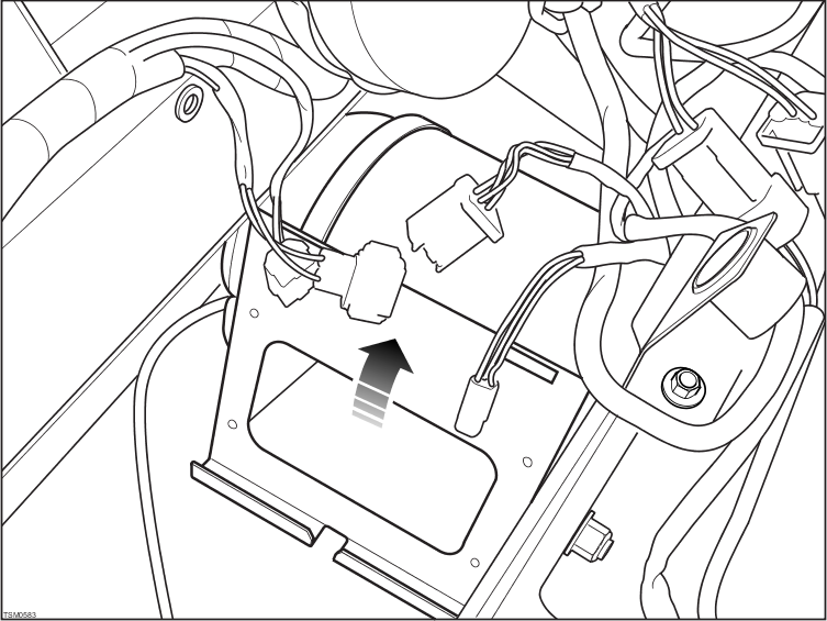 - Remove cable tie securing harness to bracket. Disconnect blower connector.
