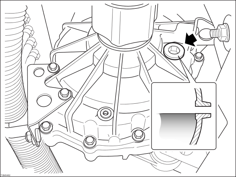 | CAUTION: Fluid lodged behind the level plug will trickle out when the plug is removed giving a false impression that the level is correct. |