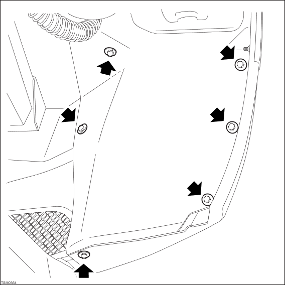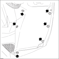- Remove bolts (x6) securing wheel arch liner to rear bumper.
