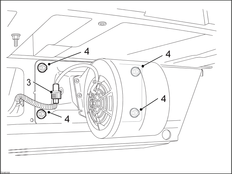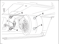 Remove nuts (x4) securing fan assembly to rear subframe (torque - 18 Nm).