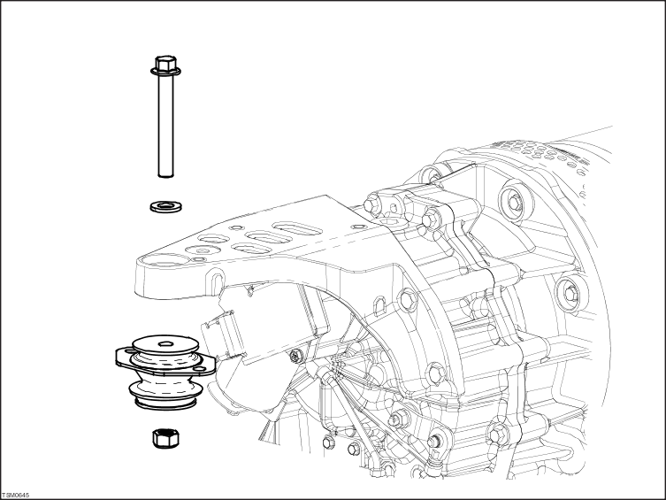 - Remove nut and bolt securing mounting to transmission (torque - 70 Nm).